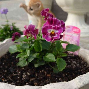 おはようございます♥️ こないだの寄せ植え2号(バラ咲き踊り葉牡丹メインのヤツ)もとっくにお嫁に行き、残すはフリル系パンジービオラの寄せ植え3号のみ🌸 しっかり根付いてくれて、これがめちゃくちゃ可愛く咲いてきてるので仕事中もついつい横目で見ちゃう👀✨ この子はフリルビオラのアデール ポット苗の頃より断然イキイキしてます😍