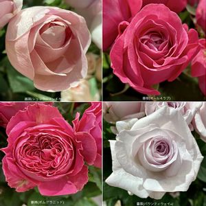 11月に入る。より秋色を深めて、フラワーショップの店頭に置かれる草花の色取りは、賑やかになってきている。 10月からの店頭で観るバラ、そのバラエティ---その1。 ----切りバラが一層、店頭を賑わしている。 それぞれ、ピンク系2つ。黄系、ピンク系そして紫系の4つのバラ。 一方、戸外ではもう、秋バラや四季バラが、勢いを出しているようだ。 ・薔薇(ピンクワルツ) 花弁の縁が赤に近いピンク、内側が淡いピンクの復色・覆輪のコントラスト。そして高芯丸弁咲きで、素敵に自己主張しているスプレーバラだ。 ・薔薇(サラ) クリーム色とアプリコット色のミックスの花弁。その色彩、花芯に向かうにつれてほどに濃く進む。なんともいえない優しさがあるカップ咲きのバラ。 ・薔薇(ブロッサムピンク) 赤いピンクの美しい肌の花弁を持つ、剣弁高芯咲きのバラ。ピンクのバラの定番だという評価があるという。 ・薔薇(ショコラロマンチカ) その花弁、淡い、ピンクとも紫色とも名状しがたく、花芯に向かっては、仄かにブラウン色に変幻している丸弁ロゼッタ咲き。この色合いからショコラのという名がついたのだろうか。