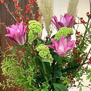 🌸きょうの教会の装花🌸 きょう2pic目です。 きょうは、ケイトウ、パンパスグラス、八重のユリでした💐 きょうも、モロッコ地震のため、被災地のため、疲れや困難の中にある方々、病気の方のために、皆で心を込めてお祈りしました🙏 皆様の上に、今週も神様の恵みが豊かにありますように、お祈りしています💕 *花日記より*💐 🏷️愛の花♡ 🏷️秘密の花園♡ 🏷️一期一会のお花♡ 🏷️花咲く乙女たち♡