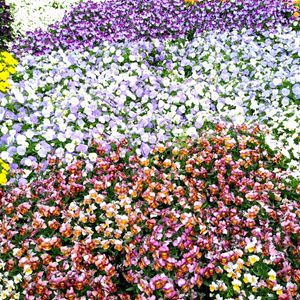 1) パンジー;青 2) 々 ;黄 3) 々 ;白 4) 々 ;青+黄+紺 七北田公園にて