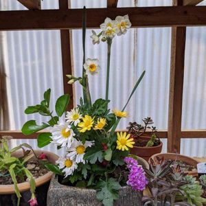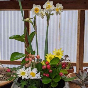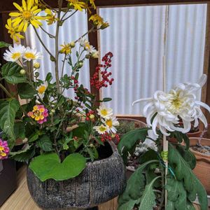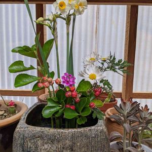 最初に、赤い実が付いているのをいけて生き出した後に、菊水仙、ランタナが、入りだしたら、赤い実が隠れてしまった。🤣🤗😅