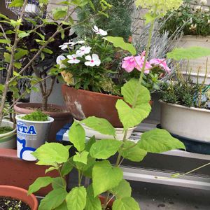 今日は午後から土いじりday😊 とうとう買ってしまいました…🌀 アナベルさん❤️もぅ増やすのは辞めようと我慢してたけど…携帯を持ち眺めてたつもりが…ポチっとな…(*´꒳`*)本日 届き大きな鉢にIN👍お父様には黙っておこう!きっと気付かずいけるだろぅ😏 隣にはインパチェンスの芽が🌱育ちますように🙏