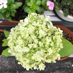アナベルです… 鉢が小さいのですぐに水切れしちゃう😂 大きい鉢に植え替えるしか方法はないのかしら?手狭な庭なので鉢はあまり大きくはしたくないのだけど…