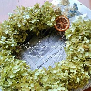アナベルのリースにポイントでデルフィニウムとドライオレンジを.。.:*♡✿ฺ