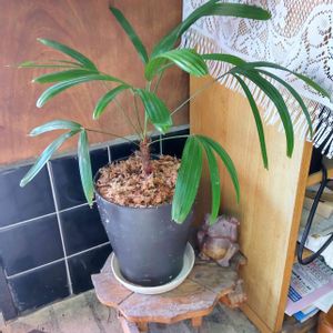 ①②今庭のシュロチクに蕾がたくさん付いています。 シュロチクの花が咲くのは頻繁なことではないので、これは幸せのサインらしいけど、しばらく伸びっぱなしにしていたのでしんどくなったのか、「ここは苦手だから、実を鳥に運んでもらって、他の場所で子孫を残したい。」というのが、花が咲くことの意味らしいです🤭ワォ ③夫がシュロチクの足元を大分スッキリ剪定したら、新しい葉が➰🎶 ④⑤剪定したを支柱に再利用しています💁🏻♀️💕💕 それにしても今日は午前11時半には35℃を超えて、少し痩せた気がしました〜🥵💦フゥ〜 2025.6.15🤳
