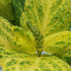 グリーンの鮮やかさに惹かれて育てはじめたコリウスに蕾が。どんなお花が咲くかな。