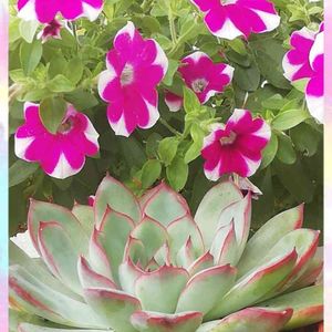 上:エケベリア・花うららさんの群生😻💚 下:葉が落ちて 勝手に群生し始めの グラプトベリアパープルドリームさん😻💜 紅葉したら 綺麗だろうな…😸💚💗💜 多肉ちゃんは 全く自由で楽しいです😸💕