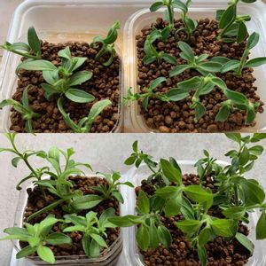 葉挿しの日🏷初参加します 我が家の第1号葉挿しちゃん達😍 本日鉢上げしました🪴 鉢が足りなく、取りあえず20鉢😓 残りは、近いうちにします💪 初㊗️葉挿しちゃん達✊ 初🐠🌴🍹summer🍹🌴🐠 乗り越えられますように🙏