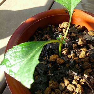 カシワバアジサイ 挿し木後新芽🌱が出てきたので鉢上げしました😆暑いけど頑張れ~💪