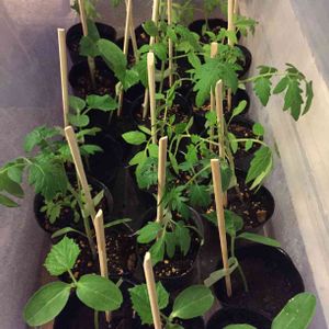 かなり、賑やかになってきました。 トマト🍅苗、胡瓜🥒苗、ペチュニア苗 そろそろ大きなポットに植え替えかな😃