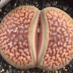 ◼️Lithops リトープス Hallii? 網目巴里玉 アミメパリギョク 無表情な多肉植物ですが隙間に何かいます 分離するんだか、花芽だか… 何かいます