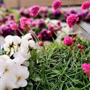 去年の春に植えたアルメリア、花が終わってからずっと放置してたけど最近の勢いが凄まじい٩( 'ω' )وガンバレー❣️ 隣が空いてたから白いビオラも植えて可愛さ倍増🤗💖 種まきももかミックスより。 【みるくももか】🐄