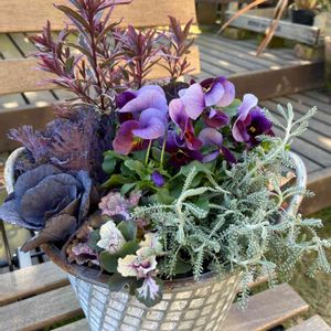寄せ植え記録 葉牡丹を主役にしたかった。 以前買って単品植えしていた ももかちゃんを入れたら、思ったよりふくよかになられていて、主役がももかちゃんになってしまった。 寄せ植え、まだまだ難しい…