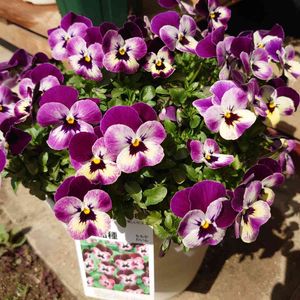 もう1枚失礼します(人 •͈ᴗ•͈) こちらはビオラももか。 もりもり〜。 セルリアもずっと咲いて楽しませてくれてます〜。