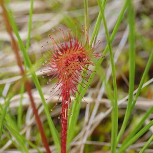 No.1207 モウセンゴケ(毛氈苔) モウセンゴケ科モウセンゴケ属 その1 言わずと知れた食虫植物です☺️ 葉の腺毛の分泌液が光って✨ますね😅 モウセンゴケは食虫植物として有名ですが、虫からの栄養はそんなに多くないので、メインは葉緑素による光合成です☺️ モウセンゴケにも花は咲きます☺️