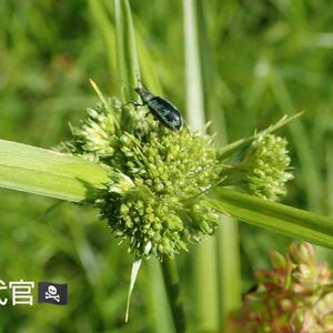 No.1210 アブラガヤ 和名:油茅 カヤツリグサ科ホタルイ属 その1 和名は、熟した果実が茶褐色になり、まるで油を染み込ませた色になることから🎵 アブラガヤの花は黄緑色で、目立ちません☺️ この頃は草丈も40センチくらいです🎵 茎は丸いです☺️ 花の上にいるのは、アオハムシダマシかな🙄