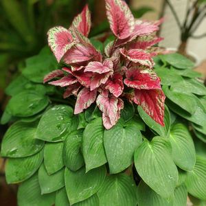 ホスタの花が終わったのでカット。 真ん中がぽっかり空いたので レックスベゴニアを入れてみたら、花が咲いたようになりました😊
