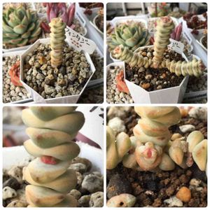 クラッスラ ファンタジー 水やりしてすっかりピンクが消えてしまったけど途中から新芽が出始めてましたました🎵