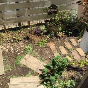 ベランダから庭へ降りるところ٩( ᐛ )و 可愛い花を植えたいなぁ 秋が待ち遠しい!