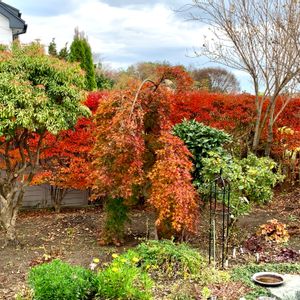 やっと庭の木々が 紅葉🍁して綺麗になってきました! もう、無くなったのもあるけどね。 今日は、暖かい風が吹いていますが ちょっと強い風 ハナミズキの葉があちこちに 飛んでます。 明日から冷え込みそう😢