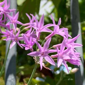 ツルバキア・ビオラセア 青い空によく合う花だね〜💕 ニラの花のお姉さんって感じかな😆 いつもお隣の柵を超えて外側で咲いています🤗 ネギ科ツルバキア属