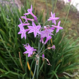 ツルバキア ビオラセア シンプルで涼やか💕 ユリ科ツルバキア属 ツルバキアはアガパンサスを小型にしたような草姿で、すらりとした立ち姿が美しく、シンプルですっきりした印象を受ける花です。花は6弁でさらに、スイセンに見られるような副花冠があるのも特徴です。葉や茎には、ニラなどネギ類に特有の臭いがあります。