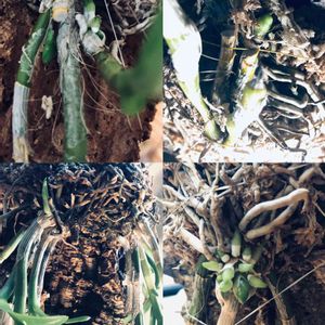 つぶつぶさん 途中から根っこ?が出てます 気根?てやつでしょうか これは良くない状態なのでしょうか 根なし苗をぶっ刺して1ヶ月弱 踏みつぶし攻撃🐈に耐えて なんとか根付いてくれたのに (。ŏ﹏ŏ)心配…