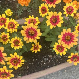 職場にて。 溢れ種が飛んで全然違うところに咲いてたジニアが可愛すぎる🫶 こうゆうところがお花の好きなところ。そしていつも命とは、、と考えます🥹