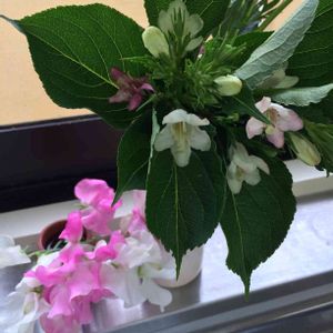 職場の スイートピーと ベンケイウツギ 本当に綺麗 癒されます