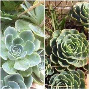 前の写真の親はこの多肉です! 左が7月頃の様子で右が最近の様子です! 紫陽花の足元にひっそりと植わっていて、左の頃には黄色とピンク色の混ざったような花を咲かせていました! 七福神かと思っていましたが、紅葉している姿を見ると確かに違うような…。
