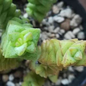 クラッスラ属の星シリーズのほにゃらら(^.^) スクスク育って嬉しいのですが上の方が徒長して花芽を... この鉢ゴチャゴチャしてるのできれいにしたいなと思う次第です🙄