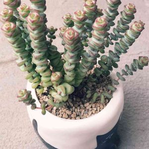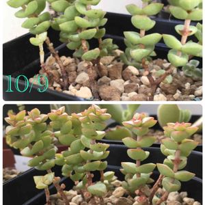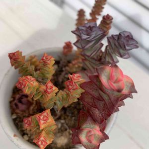夏の終わりに寄せ植えした鉢。 クラッスラばかりを集めました☺️ なかなか根付かなかったこのコたちも、段々調子が良くなってきました。 紅葉もしてるし、新芽もでてきました🙌🙌 ゆっくり成長していいからね