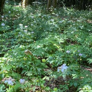 レンゲショウマ 昨日見に行ってきた🎶 薄紫色のうつむき加減に咲く姿は、 森の妖精と言う 休憩を入れながら3時間程の散策 孫っちたちと過ごす時間もプラスされ 森の中マイナスイオンたくさん浴びて 身も心も癒された
