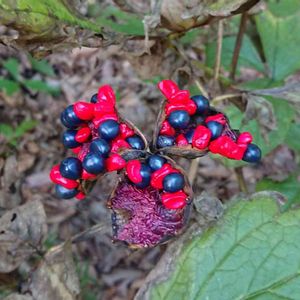 ソウシシヨウニンジン(相思子様人参) 赤と黒で可愛い実ですね☺️ 黒マジックで塗ったみたい😆