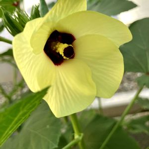 夜分遅くにこんばんは♪ オクラさんのお花🌼💚 この子が見たくて種から育てました😁 遅い定植だったのでやっとお花さん🌼が😄 ②はご注意下さい⚠️ カマキリさんがオクラの葉っぱ🌱にいました😆💚 ミニサイズなのにお腹が大きくて… お母さん⁉️ 分からない事が多々ありますが、日々、学習❗️経験❗️😅