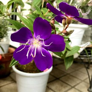 こんばんは♪ 先日お迎えしましたノボタンさんが開花しました💜💚💜 たくさんの蕾さんがいますので これからもっと楽しみです\(//∇//)\ 💜