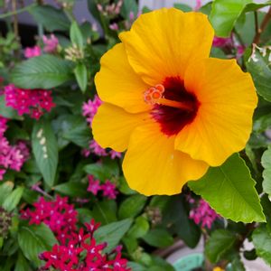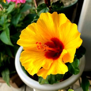こんばんは😃 今日のお花さん♪ハイビスカスさんです🌺 タイミングよく、今朝咲いてくれました😆 小さいながら元気でーす✨✨✨