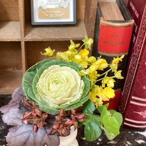 ハボタンリメイクアレンジPart2!! 先日、ハクサンさんからいただいた PWアンバサダー記念バッジと一緒に📸 ミニシェルフにピッタリサイズなので、 飾っています! 他にもエコバッグや2021年PW品種カタログ、カレンダーをいただきました。 ありがとございます💕 また機会があれば・アンバサダーに参加したいです♫
