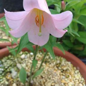 昨日蕾だったヒメサユリ。今朝開花しました!淡いピンクがとっても素敵です。香りも優雅で甘い匂いを漂わせています。