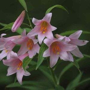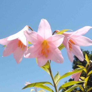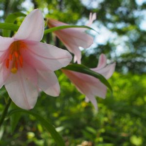 ヒメサユリ。 ピンクの花と甘い香りが特徴的な絶滅危惧植物。 オリエンタルハイブリッドの親になったユリです。 とある地域の自生地復元で数年前から組織培養で増殖を行っています。 組織培養を使っても咲くまでに四年半。 なかなかやりがいのある仕事でした笑