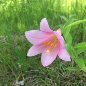 ヒメサユリ(姫小百合) Lilium rubellum 山地から亜高山帯の草地に生える多年草 花言葉は「飾らぬ美、純潔、私の心の姿」