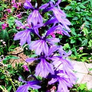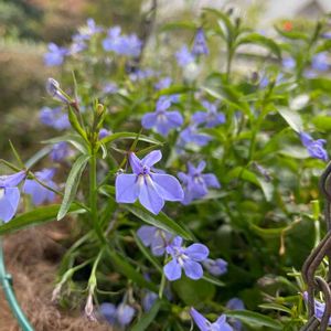 こんにちは♫ 1週間前に目が合ってしまって お迎えしたお花യꕤ*.゚ 宿根ロベリアの “プリンセスブルー”です🤍💜 星になってしまったアズーロコンパクトの後に植えました〜( •᷄◡̑•᷅ )⚘ ะ⚘ ะ ワイヤープランツの勢いが凄いので 線の細いプリンセスブルーが飲み込まれそう😄〜💦 ポットラベルによると 開花期は3~12月頃らしいです*.+゚⁺⊹˚.⋆ 霜が降りるまで咲くかも…♫ ヒョロっとしてるけど茎もしっかりしてて意外と丈夫みたいです♫♫ また台風ですね(๑•́o•̀๑) ↯↯ 被害がありませんように祈ります