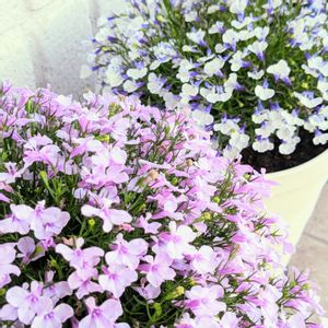 ロベリアリビエラ🩷🩵 ピンクとブルーの組み合わせもgood👍✨✨ 今日は朝から曇り空で時々☔。 庭仕事はお休みでまったりな一日です☕😌