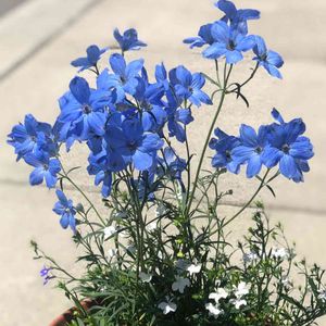 おはようございます(˶ᐢᗜᐢ˶)🎶 ブルーのお花💙🩵💙 デルフィニウムが満開になりました·͜· ︎︎ᰔᩚ 白いロベリア🤍と爽やかに𓂃𖤥𖥧𖥣⋆* 素敵な一日をお過ごしください🍀*゜