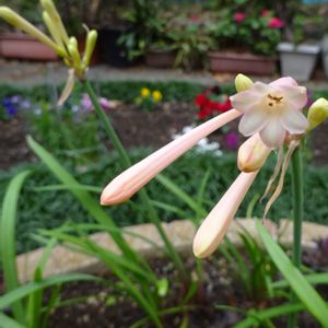 おはようございます😃 🏷️金曜日の蕾たち に参加させてください キルタンサス ヒガンバナ科キルタンサス属 我がハイツの花壇で 12月19日