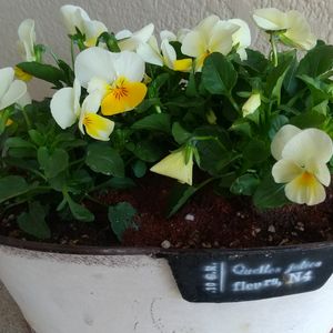 この子たちに合う鉢を探していて、 やっと今日植え替えしたかわいい黄色いビオラ✨ 左がクリームイエローレモンリップで、 右がカスタードクリーム☝️ ビオラの名前ってかわいい💕