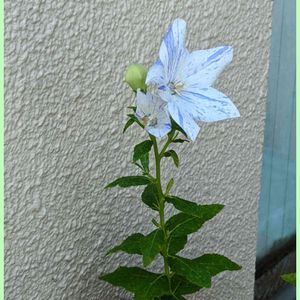 ベランダにあります 絞り模様のキキョウ (桔梗) 白っぽい花弁に青色の絞り模様。 毎年、表彰を魅せてくれますね。 自宅のベランダにて。 2022年6月29日撮影