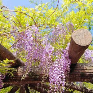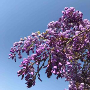 我が家のシンボルツリー、藤の花が咲き出しました💜 玄関先に甘い香りが漂います クマバチ🐝が蜜を集めにブンブン 温厚なハチ達なので そうっと温かく見守ってます