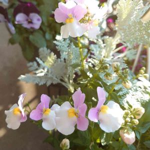 ネメシア メロウ ミルキーピンク🌱💕 寄せ植えのネメシアさんが咲き出しましたヽ(=´▽`=)ノ💕✨淡いピンク色が優しい雰囲気です(ღ*ˇᴗˇ*)。o