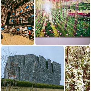 こんばんは。 所沢の角川ミュージアム行ってきました。😊 ↗️ミュージアムに飾られていた 大岩オスカール path to the light ↘️ユキヤナギ ↙️角川ミュージアム ↖️2021年第71回NHK紅白歌合戦 YOASOBIが歌った時の🎤 背景の本棚 約8mの巨大本棚に30000冊が配架されている。 角川のオフィスやホテルもありました。